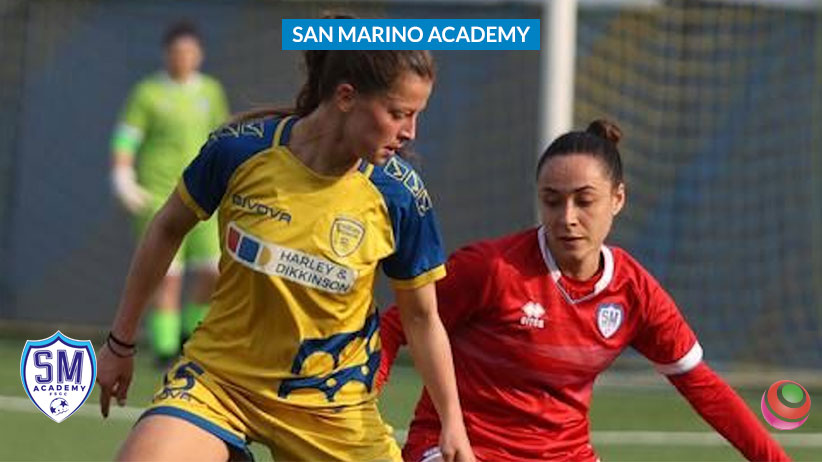 Dopo pochi secondi c’è subito un brivido per Limardi, impegnata nella primissima impostazione: Picchi, in pressione, mette il piede sul rinvio del portiere ospite, mandando la sfera a lato. Le Titane prendono campo e al 3’ levano qualche protesta per un cross di Bonnín deviato in maniera sospetta da Congia all’ingresso dell’area: è braccio largo per la spagnola e per le compagne, è un movimento congruo, invece, per il direttore di gara. La risposta del Chievo è affidata ad una incursione di Merli, che dal fondo cerca le compagne a centro area; la difesa libera sui piedi di Montemezzo, che da fuori area carica un destro a lato. Poco dopo, Begal chiude una ripartenza veloce con un destro dal limite che trova preparata Limardi. Scollinato il quarto d’ora, serve un doppio intervento di Gardel per mantenere intatta la porta sammarinese. Il difensore dell’Academy, sul calcio di punizione battuto a sorpresa per Poli, prima svetta sul cross della 14 di casa, anticipando Picchi in maniera determinate, poi mette la testa anche sulla successiva conclusione volante di Merli, sostituendosi di fatto a Limardi. La San Marino Academy spezza questo momento di marca gialloblù costruendo la migliore palla-gol della sfida. In ripartenza, Carrer apre per Tamburini, che subito verticalizza per Bonnín: la spagnola sterza sul dischetto del rigore mandando fuori giri sia Saggion che Polonio, poi calcia immediatamente col mancino, scheggiando la parte superiore della traversa. Le Titane comunque non perdono tempo a rammaricarsi. La loro presenza negli ultimi venticinque metri del Chievo si fa stabile. Al 25’, sugli sviluppi di un corner, Puglisi ha la palla buona per colpire dal limite dell’area, ma il suo destro di prima intenzione incontra una decisiva deviazione. Ne nasce un secondo calcio d’angolo su cui la difesa di casa libera; Ladu ripropone immediatamente in avanti pescando Tamburini in posizione regolare. La centravanti dell’Academy ha il tempo di controllare il pallone in area, ma Polonio è superlativa nello scegliere il tempo dell’uscita e nello schermare la conclusione a botta sicura dell’avversaria.