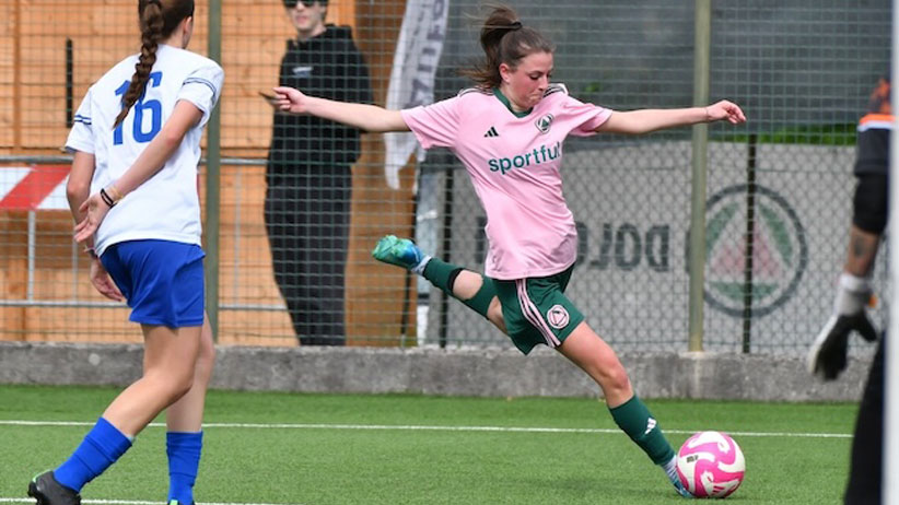 PRESSIONE – Senza mister Bertuzzi in panchina, squalificato per sei giornate dopo la gara contro il Venezia (a sostituirlo ha pensato Daniela Turra), le dolomitiche subiscono la pressione dalla compagine trevigiana. Al 3’, la prima occasione di Pisoni: solo un’uscita bassa di Dal Bon e il conseguente salvataggio di Della Vecchia sulla linea evitano lo svantaggio. E, al quarto d’ora di gioco, Crevalcore sfiora l’incrocio dei pali al termine di un’azione personale. Il Villorba preme sull’acceleratore alla ricerca del vantaggio, esercitando un pressing costante sulla difesa rosanero, che si fa sorprendere al 24’ sugli sviluppi di un piazzato: Bardahan, tutta sola, colpisce di testa e infila il pallone nell’angolo basso. Poi, a riprendersi la scena, è ancora lei: la numero 1 dolomitica. E sempre contro Pisoni: al 26’, neutralizza un suo tiro, e al 41’, alza la sfera sopra la traversa un cross velenoso.