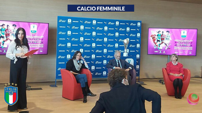 È avvenuta nella mattinata di oggi, all’interno della sala Frecciarossa Lounge della stazione di Roma Tiburtina, la conferenza stampa di presentazione delle Final Four di Supercoppa Femminile che si disputeranno nella seconda settimana di Gennaio a Latina e Frosinone. Le squadre coinvolte sono Milan, Sassuolo, Roma e Juventus, detentrice del trofeo.  All’evento hanno preso parte il Presidente della FIGC, Gabriele Gravina, presenza costante ormai quando si tratta di femminile, la Presidente della FIGC Femminile, Ludovica Mantovani, la responsabile marketing di Ferrovie dello Stato, Annamaria Morrone, il delegato allo sport della regione Lazio Roberto Taroni e una delegazioni delle compagini di Frosinone e Latina, le città che ospiteranno le gare nei loro impianti. Abbiamo avuto modo di partecipare all’evento di questa mattina raccogliendo le dichiarazioni dei partecipanti.
