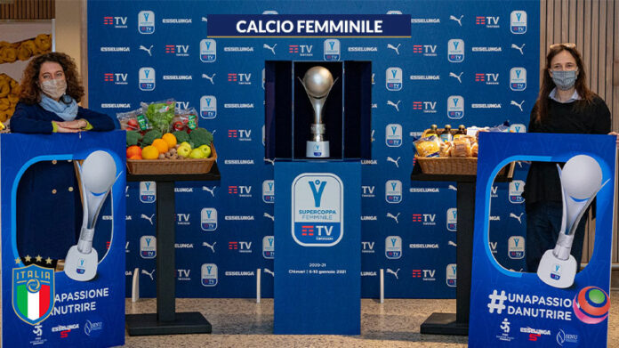È stato esposto oggi, presso il negozio di Via Piave a Genova, il trofeo della Supercoppa Femminile TIMVISION, a simboleggiare la collaborazione che lega Esselunga alla Divisione Calcio Femminile, di cui l’azienda è premium partner. Una piacevole sorpresa per i visitatori del nuovo punto vendita – il primo del capoluogo ligure – che hanno potuto scattare foto ricordo con la coppa a due giorni dall’atto conclusivo della competizione.