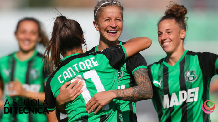 Continua la striscia di risultati positivi per il Sassuolo, la sorpresa – ma non troppo – di questo inizio campionato. Le ragazze di mister Piovani fanno 6/6 con 16 reti segnate (nessuna squadra ha fatto meglio) e solo 3 subite, prendendosi la testa della classifica a punteggio pieno, al pari della big Juventus. A soli 20 minuti dalla fine, le neroverdi hanno visto sfumare il record di squadra di 5 clean sheet di fila, rischiando addirittura una rimonta da parte delle azzurre che nel giro di 4 minuti si sono rimesse in carreggiata. Brave a gestire, nel complesso, le padrone di casa, ma soprattutto brave a mostrare sin da subito il proprio valore con un gran bel goal messo a segno da Sofia Cantore.