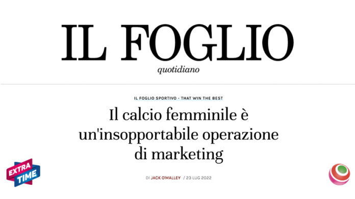 Il redattore de ”Il Foglio” prosegue: ”Quello che non sopporto è l’operazione di marketing che c’è attorno al movimento calcistico femminile, che in nome di una parità fisica e tattica inesistente pretende di venderci come uguale un surrogato dello sport di cui ci siamo innamorati. Sono due sport diversi, e chi vuole seguire quello più lento e acuto dei due ha tutto il diritto di farlo, eppure cercano di spacciarli come identici”.