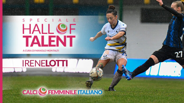 Classe ’98 e di origini fiorentine, Irene Lotti ha avuto il coraggio, riprendendo un aforisma attribuito a Cristoforo Colombo, di perdere di vista le rive dell’Arno per attraversare geograficamente il nostro Paese, da Ovest verso Est, e raggiungere la città scaligera dove attualmente rincorre il suo sogno di giocare a calcio. Il “centrocampismo” di Irene si compone di qualità, visione di gioco, intuizione e altruismo, il tutto condito da un’intensa carica agonistica. Nelle palle contese abbina alti livelli di aggressività e tecnica che le permettono di recuperare e poi gestire correttamente il pallone: i suoi contrasti, considerando nel complesso recuperi di palla, intercettazioni su verticalizzazioni ed anticipi sulle avversarie dove sfrutta la propria capacità intuitiva e la velocità di gambe, sfiorano infatti il 76% di successo.